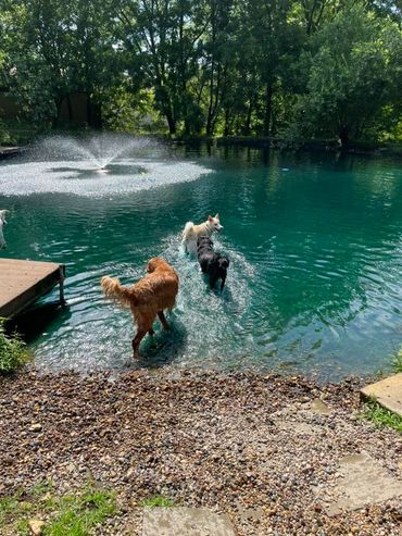 Our pond is a popular place in the warmer months, and we even offer a "Splashy Waters" for the little ones, away from the pandemonium of the larger dogs.